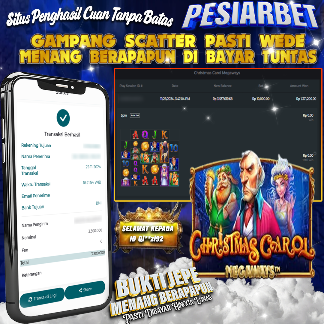 PESIARBET Bukti Kemenangan Slot CHRISTMAS CAROL MEGAWAYS