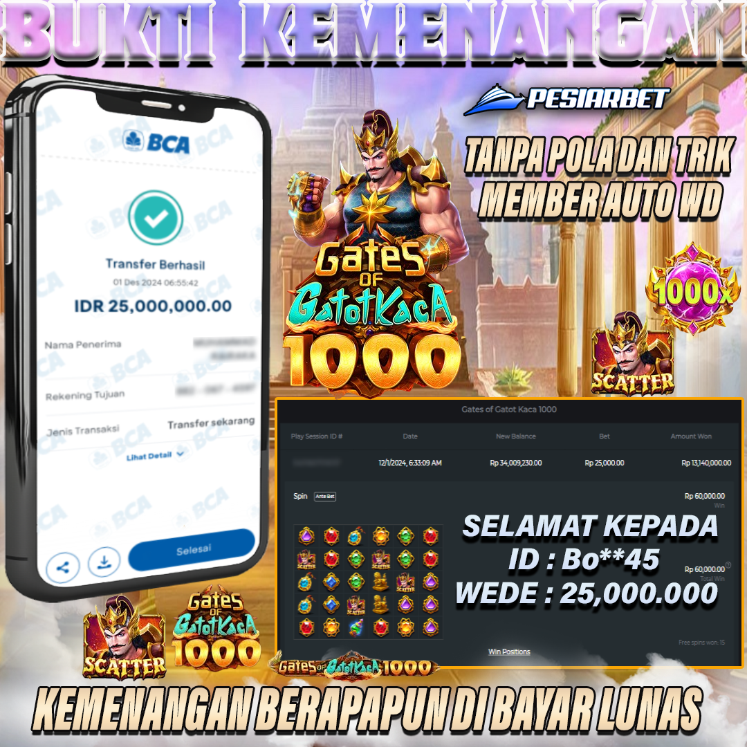 PESIARBET Bukti Kemenangan Slot GATES OF GATOTKACA
