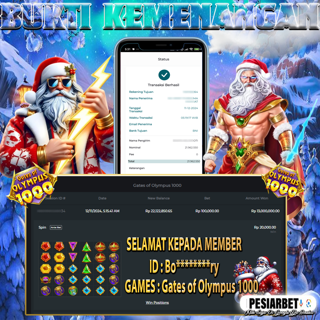 PESIARBET Bukti Kemenangan Slot GATES OF OLYMPUS 1000