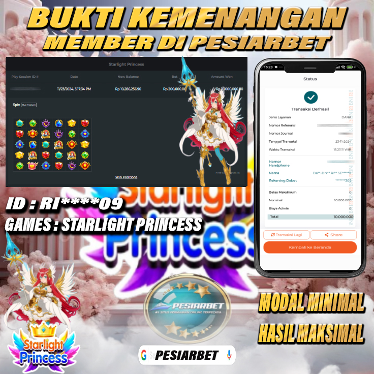 PESIARBET Bukti Kemenangan Slot STARLIGHT PRINCESS